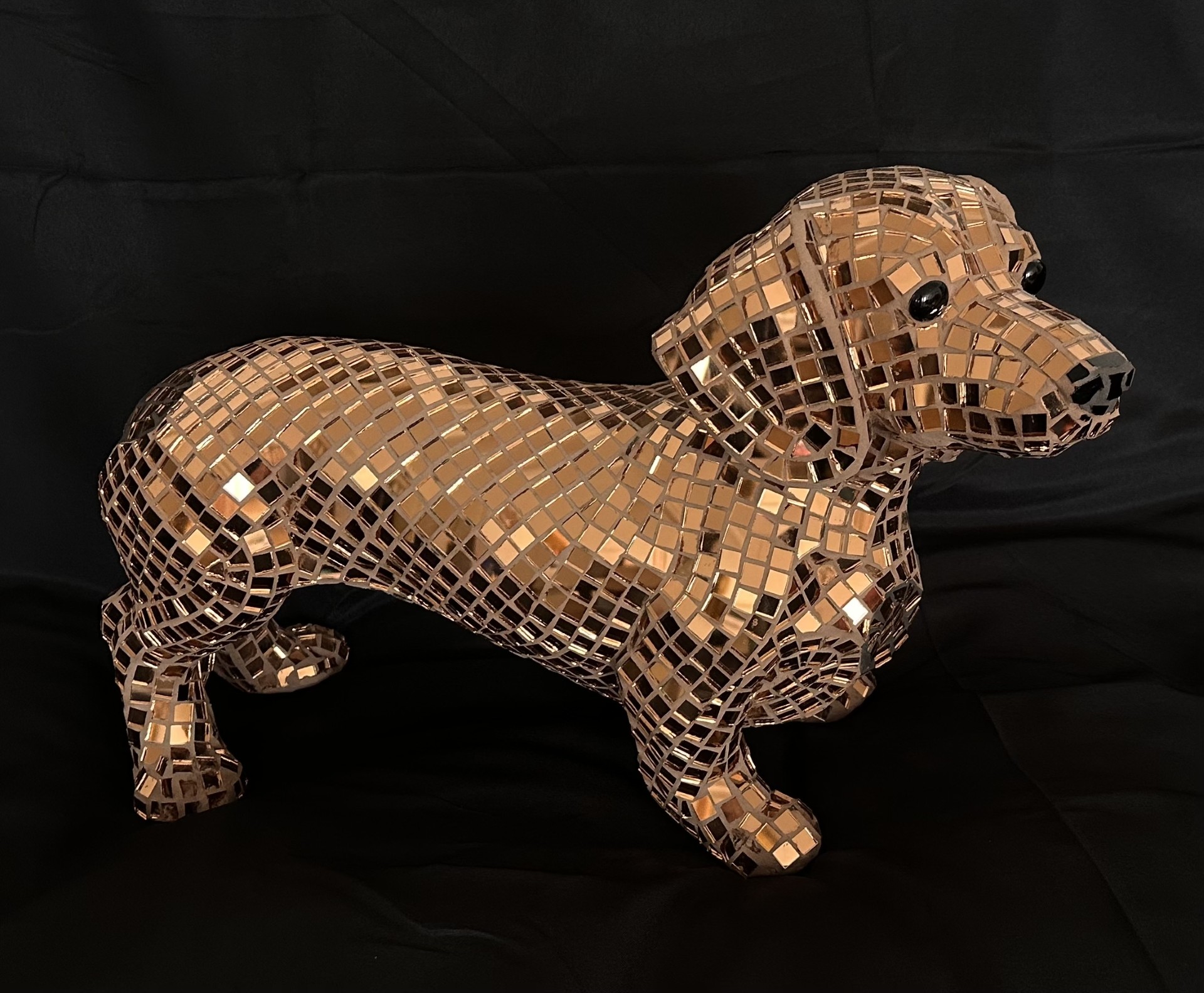 22 x 50 x 31 cm 2026 Glass mosaic with copper/bronze-mirrored glass in Andamento, polystone, and two-colored grout € 750